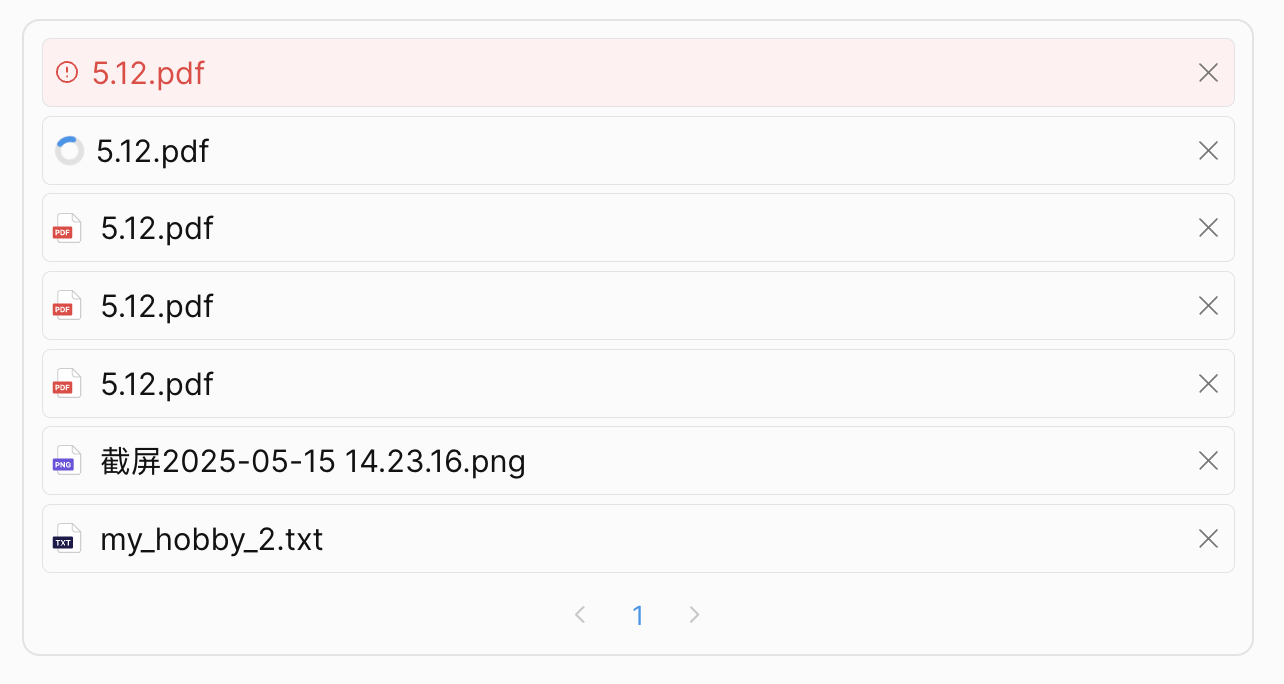 - Attachment list merges uploading and uploaded files, displaying up to 10 items.