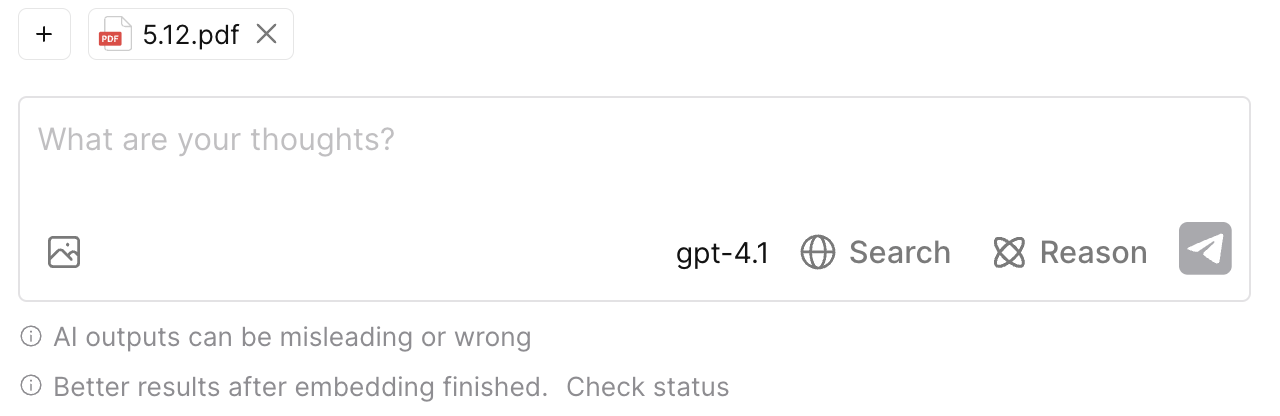 - Introduced an embedding status tooltip in the AI chat interface, providing real-time feedback on embedding progress for your workspace.