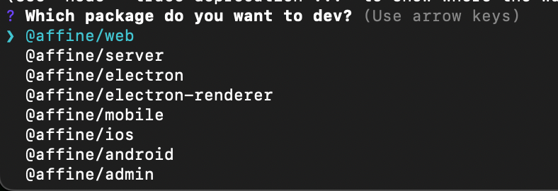 - Added '@affine/admin' to the list of selectable packages for development commands.